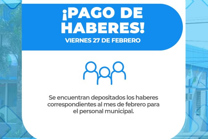 Informamos que ya se encuentran depositados los haberes correspondientes al mes de febrero para todo el personal municipal. 👏 Gracias por el compromiso y el trabajo diario que realizan por...
