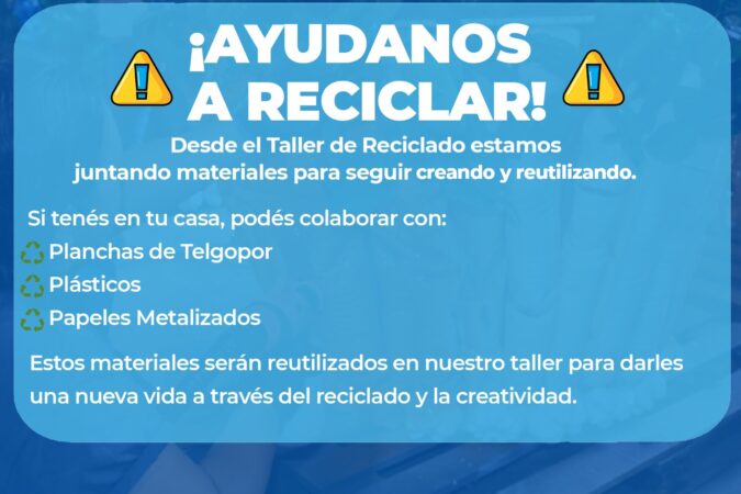 Desde el Taller de Reciclado invitamos a toda la comunidad a sumarse y colaborar con materiales que pueden tener una nueva vida a través del reciclaje y la creatividad. ✂️🎨...