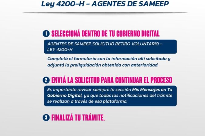 La empresa estatal Sameep informó que su Directorio resolvió adherir, mediante la Resolución N° 032/26, al Régimen de Retiro Voluntario Móvil dispuesto por el Gobierno provincial a través de la...