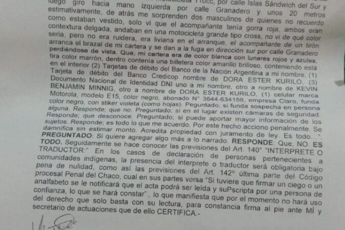 JUAN JOSE CASTELLI «ARREBATO EN PLENA VÍA PÚBLICA EN JUAN JOSÉ CASTELLI: UNA MUJER DENUNCIA EL ROBO DE SU CARTERA Y PIDE COLABORACIÓN»