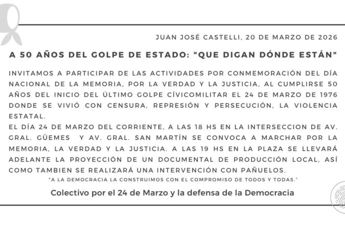 A 50 años del golpe de Estado, convocan a marchar por la memoria en Castelli