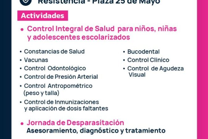 ESTE JUEVES 9: NIÑOS Y ADOLESCENTES ACCEDERÁN A CONTROLES GRATUITOS EN UNA JORNADA INTEGRAL