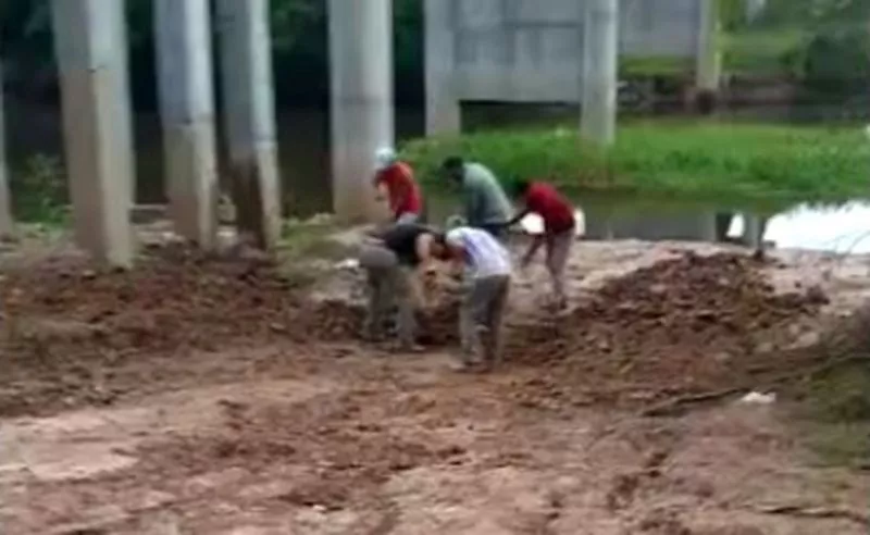 Se trata de la construcción de una rampa, con salida al río. Emerenciano Sena trabaja