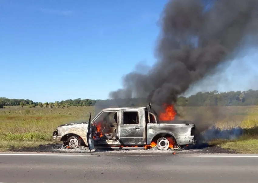 Una camioneta Ford Ranger se prendió fuego esta siesta sobre la ruta nacional 11, a