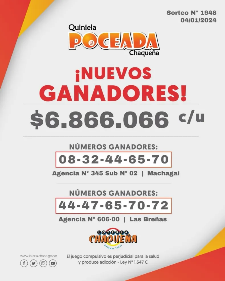 DOS NUEVOS GANADORES EN LA POCEADA CHAQUEÑA: ESTA VEZ SON DE MACHAGAI Y LAS BREÑAS
