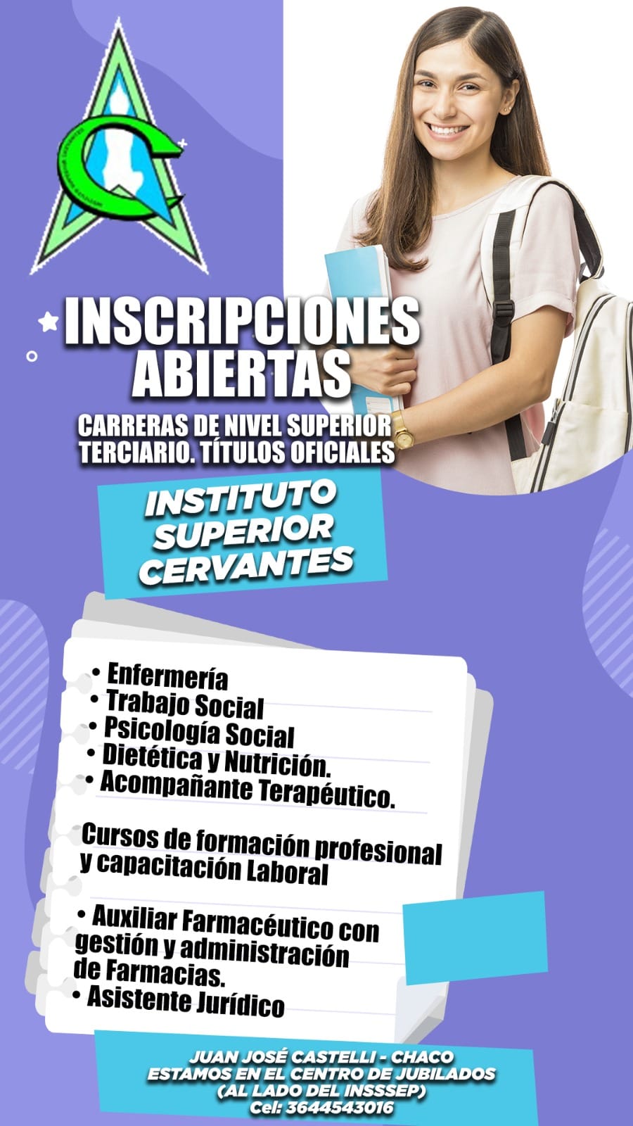 El INSTITUTO SUPERIOR CERVANTES nuevamente este 2024 apuesta con nuevas ofertas académicas a nuestra ciudad