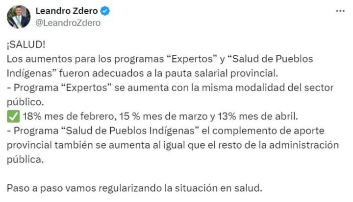 Además, el Ejecutivo provincial anunció que los aumentos para los programas «Expertos» y «Salud de