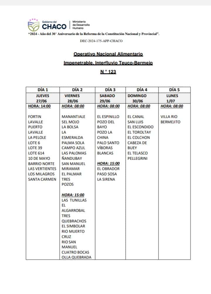 El próximo 27 de junio dará inicio el Operativo Nacional Alimentario N° 123 en la