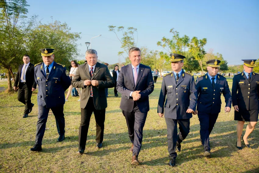 El gobernador, Leandro Zdero, junto al ministro de Seguridad y Justicia, Hugo Matkovich, presidió este miércoles