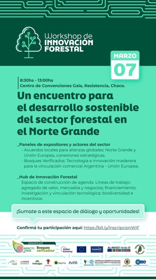 ESTE VIERNES SE REALIZARÁ UN WORKSHOP DE INNOVACIÓN FORESTAL EN EL CENTRO DE CONVENCIONES GALA DE RESISTENCIA