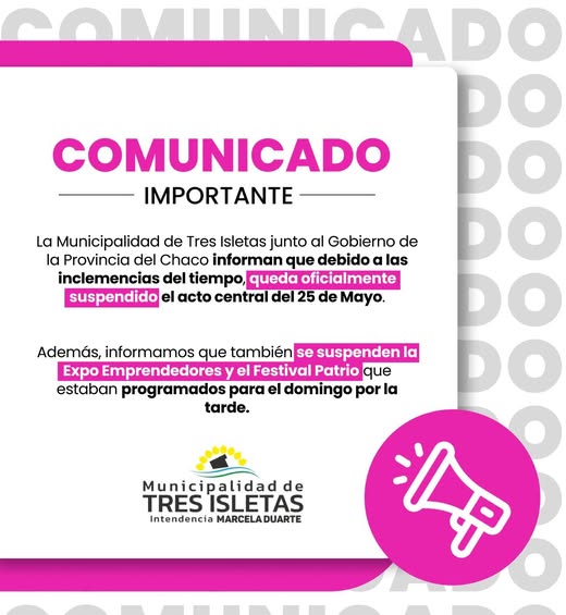 PÓRTICO MULTIMEDIOS: ENVÍANOS INFORMACIÓN, AUDIOS, MENSAJES AL 3644-688080/3644-404921 Desde la Municipalidad de Tres Isletas informamos