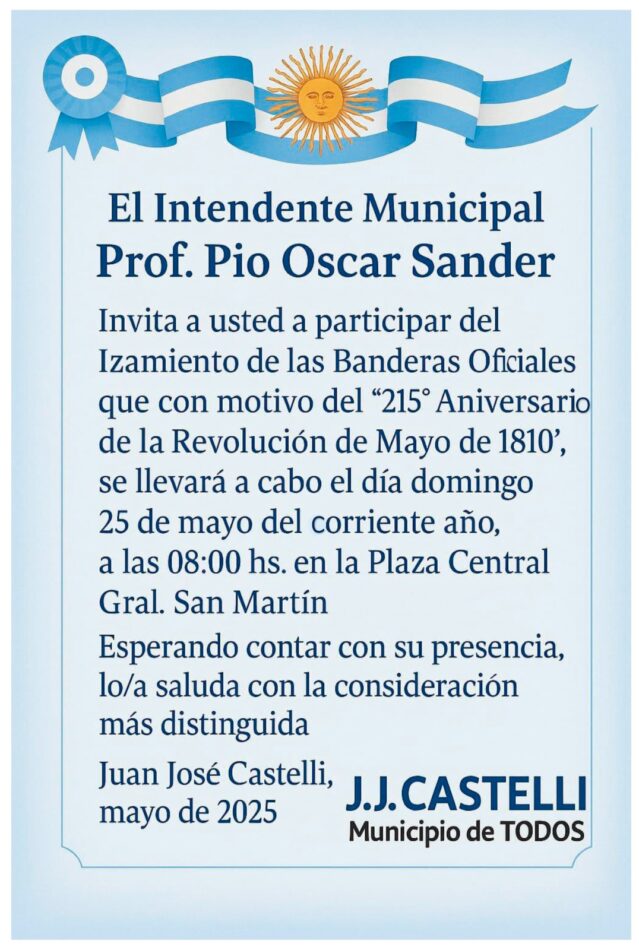Invita a usted a participar del Izamiento de las Banderas Oficiales 🇦🇷, que con