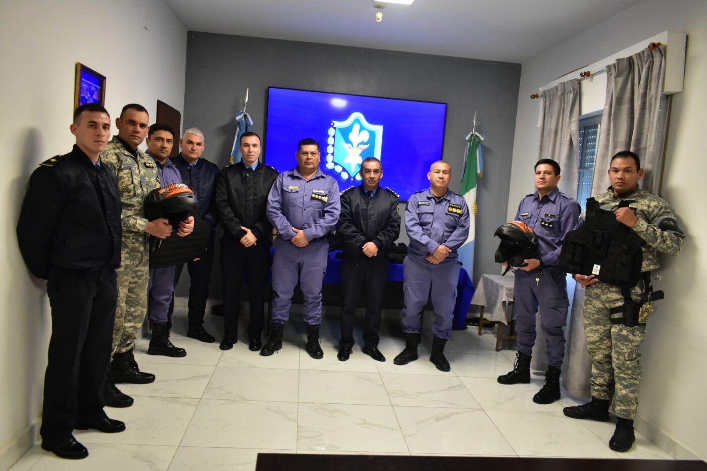 PÓRTICO MULTIMEDIOS: envíanos información, audios, mensajes al 3644-688080/3644-404921 Entregaron cascos rebatibles y chalecos balísticos. El