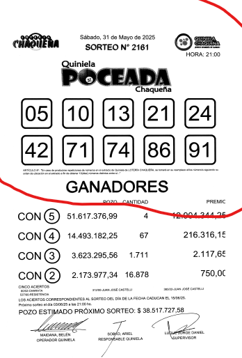 CASTELLI “DOS GANADORES DE LA POCEADA EN NUESTRA LOCALIDAD, CADA UNO SE LLEVA CASI 13