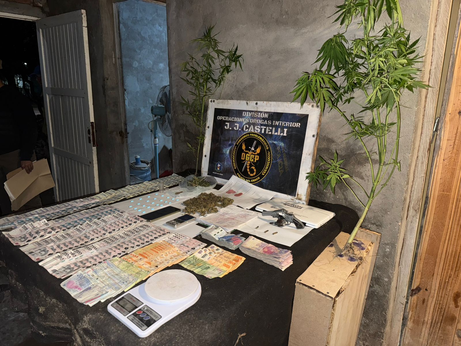 ALLANAMIENTO EN J. J. CASTELLI: SECUESTRAN MARIHUANA, ARMA DE FUEGO Y GRAN SUMA DE DINERO EN OPERATIVO ANTIDROGAS