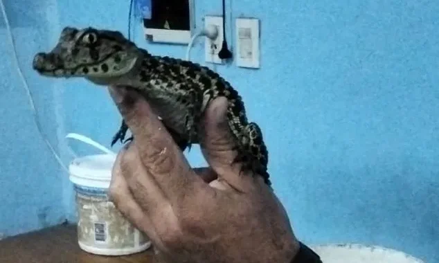 RESCATARON A UN EJEMPLAR JOVEN DE YACARÉ OVERO EN UNA VIVIENDA