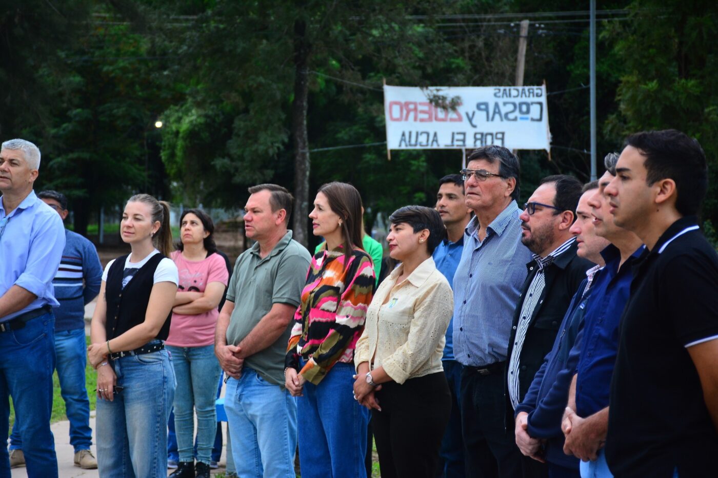 Durante la ceremonia, alumnos de la EEP N° 358 «Elsa Santa Cruz» fueron los encargados de izar los pabellones, en un acto que reunió a funcionarios municipales, docentes, vecinos y familias de la comunidad.