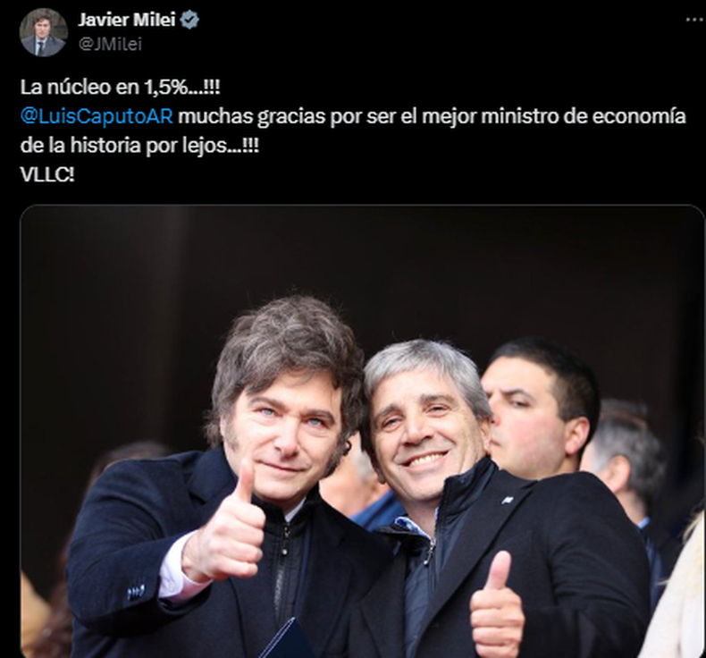 A PESAR DE QUE LA INFLACIÓN SUBIÓ, JAVIER MILEI Y LUIS CAPUTO CELEBRARON LOS DATOS DE JULIO