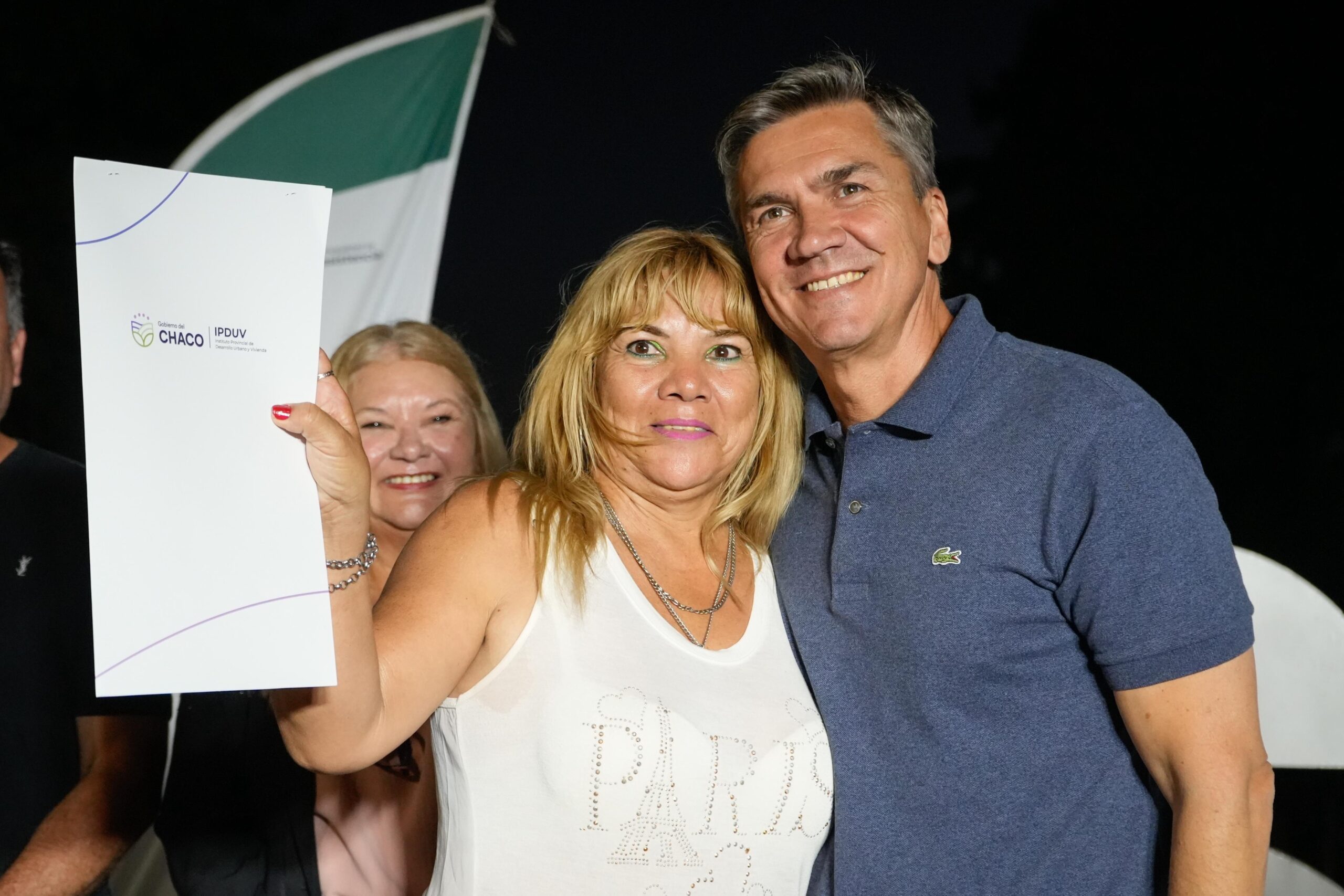 Esta noche, en el marco del 148º aniversario de la ciudad de Resistencia, el gobernador Leandro Zdero junto al presidente del Instituto Provincial de Desarrollo Urbano y Vivienda (IPDUV), Fernando Berecoechea, al presidente del Concejo Municipal de Resistencia, Alejandro Aradas, al ministro de Gobierno, Julio Ferro; a la secretaria general, Carolina Meiriño y a la presidente de la Legislatura, Carmen Delgado, entregaron títulos de propiedad a familias chaqueñas que aguardaron durante más de 40 años.