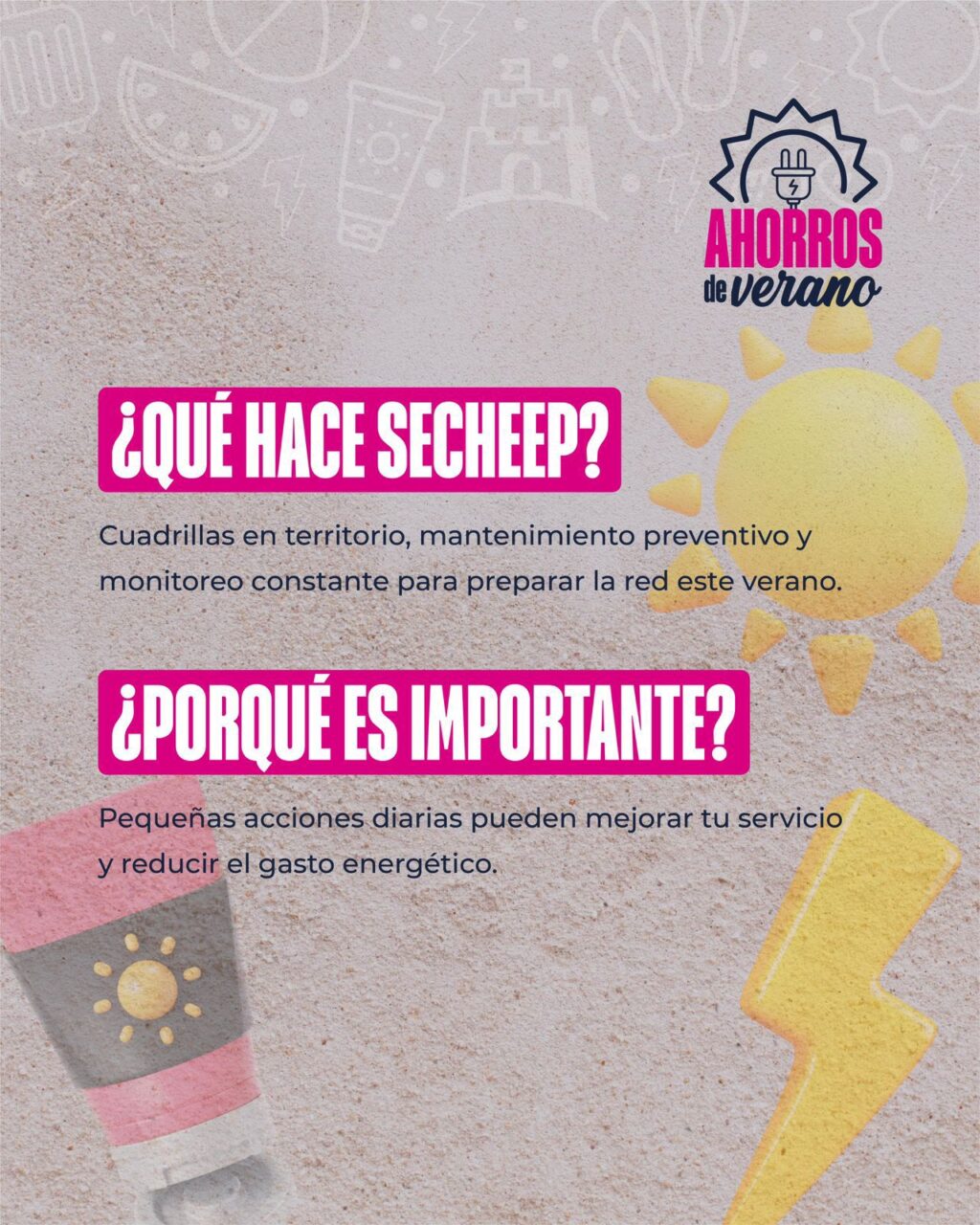 Ante ello, SECHEEP pone en marcha la campaña “Ahorro de Verano”, mediante la cual recuerdan y reiteran consejos y/o tips para un uso racional y adecuado del recurso energético con el objetivo de ahorrar en los consumos de los hogares y por consiguiente atenuar el costo de las facturas.