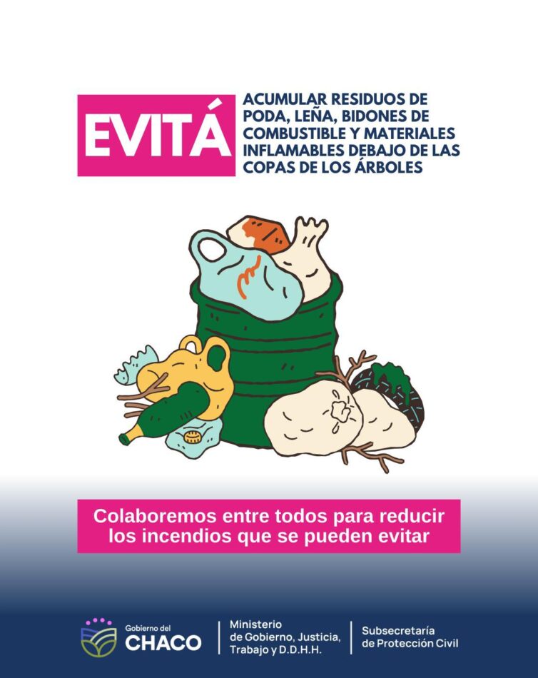 El gobierno del Chaco pide colaboración a la comunidad para evitar focos de incendios y para cuidarnos entre todos.