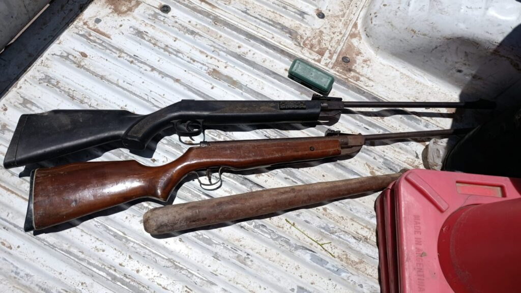 Durante el procedimiento, los agentes secuestraron dos rifles de aire comprimido, un garrote de madera, 81 balines de plomo y un cartucho calibre 32.