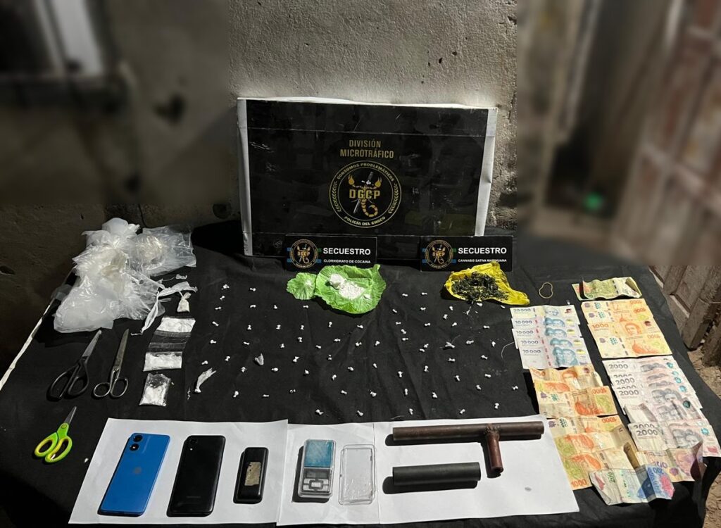 La medida judicial se concretó, hoy a las 20:30, con intervención del Juzgado de Garantías N° 5 y la Fiscalía Antidrogas N° 1. Durante el operativo, los agentes lograron el secuestro de 72 envoltorios de polietileno tipo “bochitas” y un envoltorio tipo “bochón” que contenían sustancia blanquecina, la cual arrojó resultado positivo a cocaína, con un peso total de 56,8 gramos.