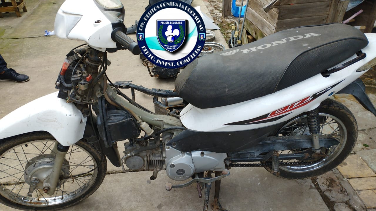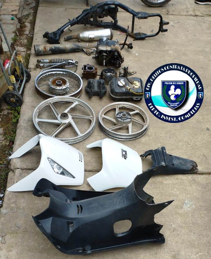 Como resultado secuestraron varias prendas de vestir utilizadas para cometer el ilícito, tambien hallaron partes de motocicletas, un motor y cuadro de motocicleta con pedido de secuestro activo, una motocicleta Honda Biz con numeraciones adulteradas.