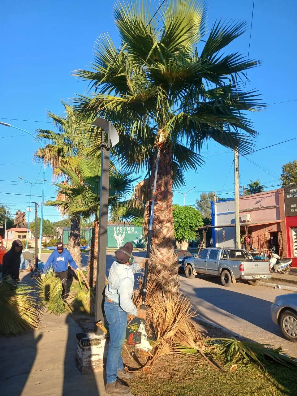El equipo de poda a cargo de Daniel Nuske, continúa llevando adelante trabajos de poda de formación en las palmeras de los bulevares de la ciudad, con el objetivo de mejorar el desarrollo de las especies, garantizar la seguridad y embellecer los espacios públicos. 🌿