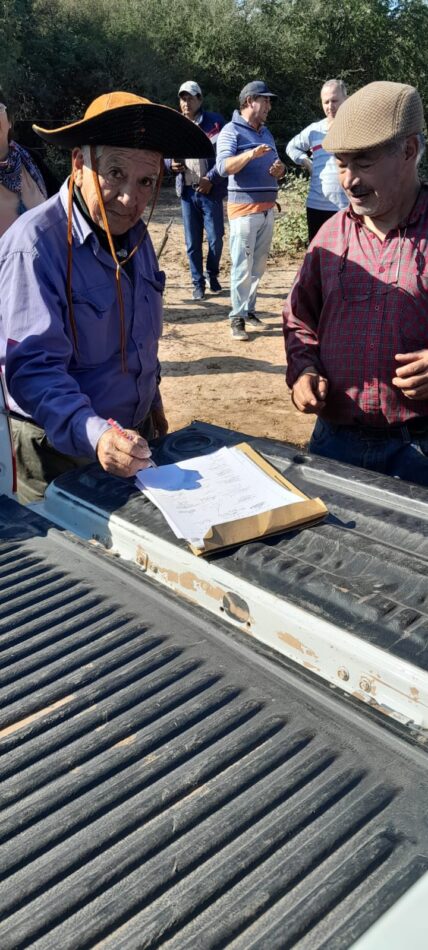 La reunión se realizó en el cruce de las calle 10 y la 23 del Paraje el Bordo, dicha obra llevaba más de 15 años sin poderse concretar, hoy gracias a las gestiones realizadas por la comisión directiva del consorcio caminero N° 50 de Las Hacheras es una realidad, también en el día de ayer martes 26 logramos reunirnos con el Intendente Sr. Zenon Cuellar , en el pje Manantiales a orillas del Río Bermejo, donde acordamos la posibilidad de reunirnos el próximo miércoles 4 con la comunidad del Zapallar, y autoridades del instituto de tierras fiscales con el objetivo de tratar la extensión de las constancias de tierra para la conexión de la luz».