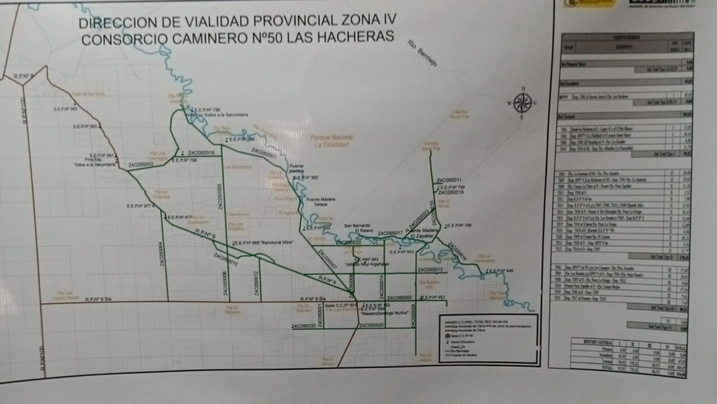 «Ésta obra se ejecuto en un plazo de 5 meses, cuando desde el Consorcio Caminero N° 50 de Las Hacheras, logramos reunir a la comunidad del zapallar y sus alrededores el día 03 de julio del corriente año, acompañados por algunas autoridades, el presidente de la comunidad de las 150.000, el Intendente del Espinillo Zenón Cuellar, El vocal del instituto de tierras fiscales del chaco, Dr. Lucio Beck, el ingeniero Marcelo Feiniger de Vialidad Provincial zona IV J.J. Castelli, con el acompañamiento de la comisión de productores de la parcela 408, la enfermera del puesto sanitario del zapallar Sra. Vanesa Drubi y socios del consorcio caminero.