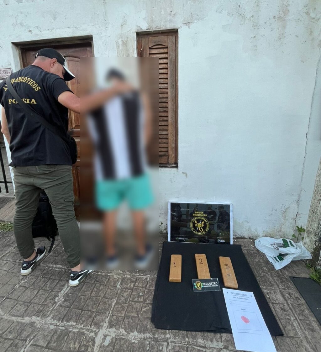 De inmediato los agentes observaron a un hombre de 28 años que fue demorado y que en su poder tenía tres formatos rectangulares de marihuana con un pesaje de 2 kilos y 10 gramos.