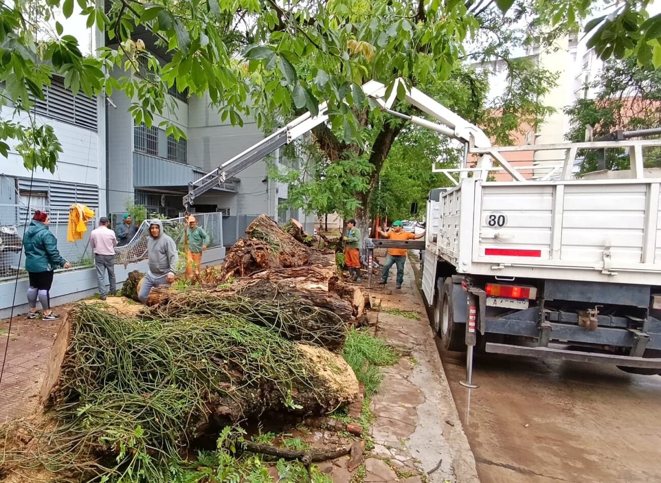 La Municipalidad de Resistencia, a través de la Dirección de la Dirección de Paseos y Jardines, llevó a cabo varios operativos en distintos puntos de la Ciudad para levantar unos 10 árboles caídos, que obstruían las veredas y las calles, en algunos casos.