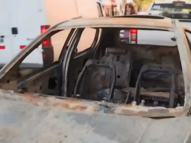 ASÍ QUEDÓ LA CAMIONETA EN LA QUE SE FUERON LAS CHICAS ASESINADAS EN FLORENCIO VARELA TRAS SER INCENDIADA