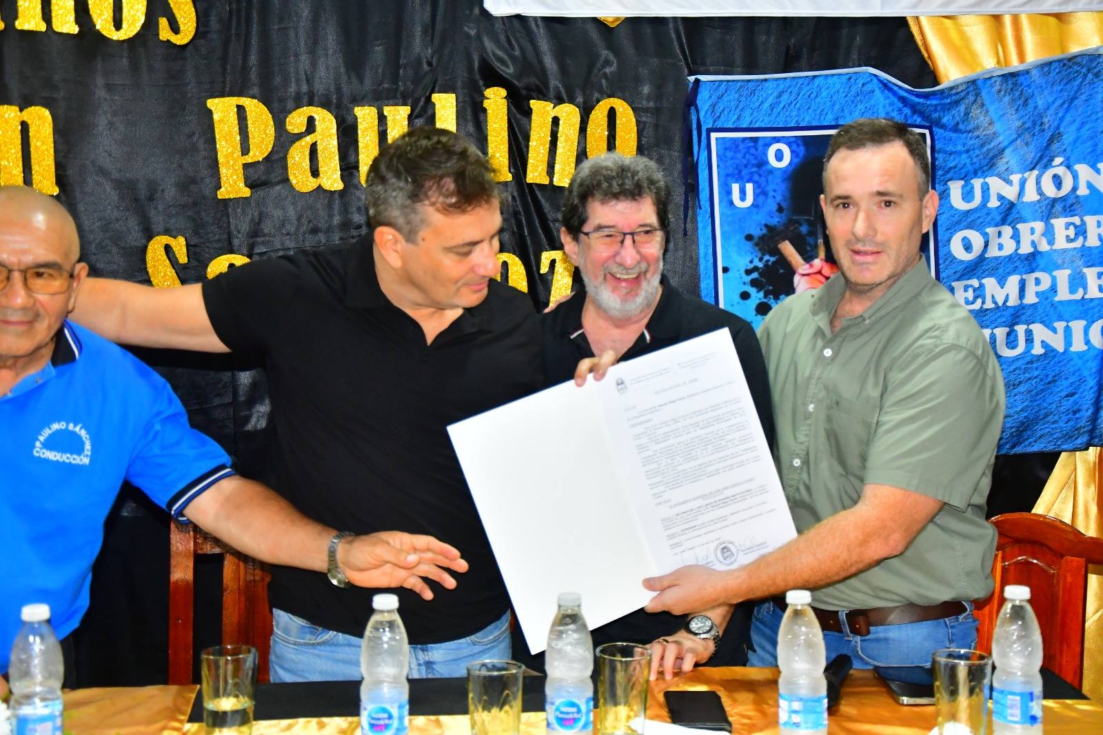 El secretario de Gobierno, Ismael Pablo Barnes, participó del acto acompañando al flamante secretario general del gremio municipal, Paulino Sánchez, y al secretario general de la Confederación de Trabajadores Municipales de la República Argentina, Hernán Diego Doval, en el marco de un plenario que reunió a referentes de la región NEA.