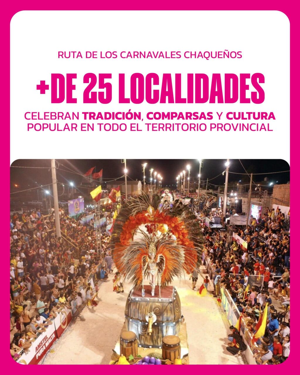 El Instituto de Turismo del Chaco junto al Instituto de Cultura, informaron que el fin de semana largo de Carnaval, del 14 al 17 de febrero de 2026, dejó un balance altamente positivo para la provincia en términos turísticos, culturales y económicos, en el marco de la Ruta de los Carnavales Chaqueños 2026, iniciativa que integró a más de 25 municipios del territorio provincial.