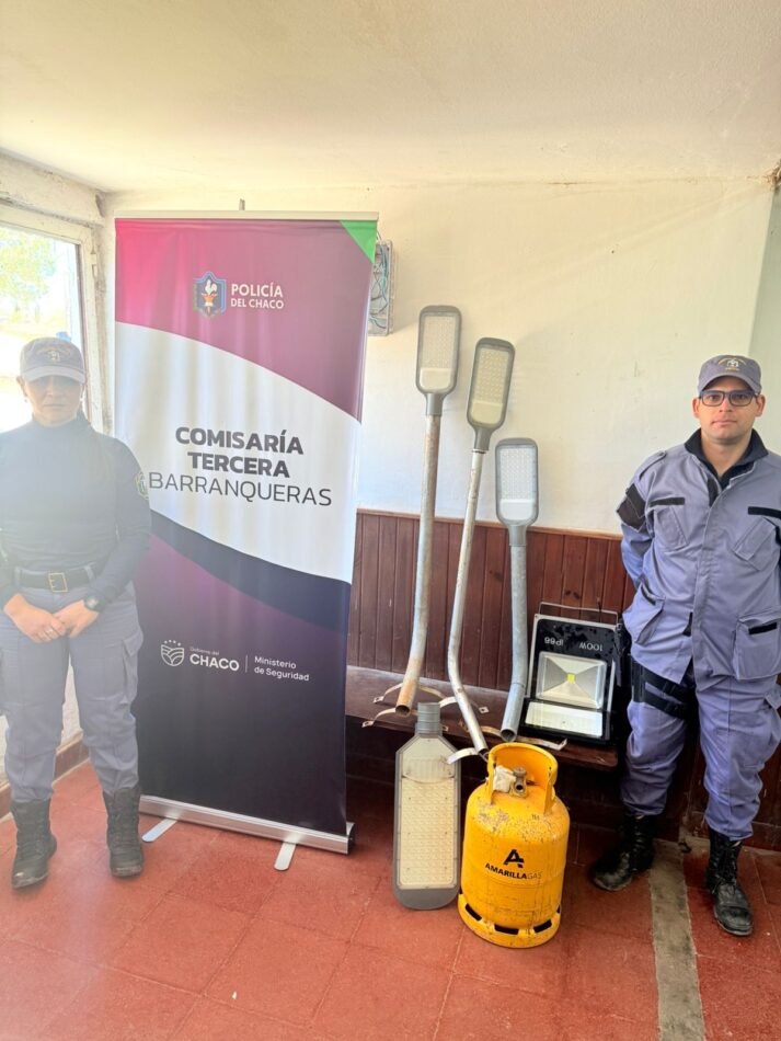 En tanto en otra casa ubicada en calle Ceibo al 1520 incautaron tres reflectores para alumbrado público.