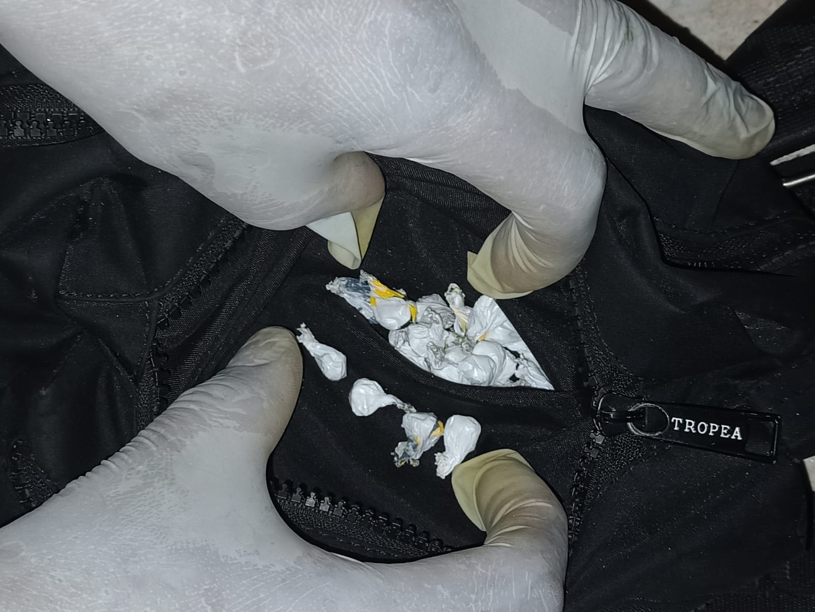 🔶 (159) CIENTO CINCUENTA Y NUEVE ENVOLTORIOS DE POLIETILENO DE LOS CUALES (07) DE ELLOS SON MAS GRANDES, DE SUSTANCIA ESTUPEFACIENTE COCAINA CON UN PESO TOTAL DE 44.3 GRAMOS