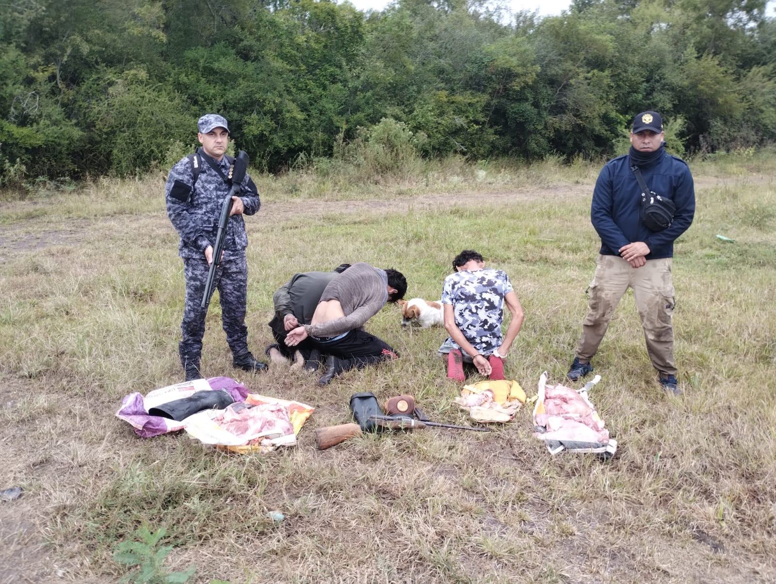 Los agentes tomaron conocimiento de que, horas antes, tres ciudadanos armados habían ingresado a un campo de la zona. Ante esta situación, se dispuso un operativo cerrojo en el lugar.