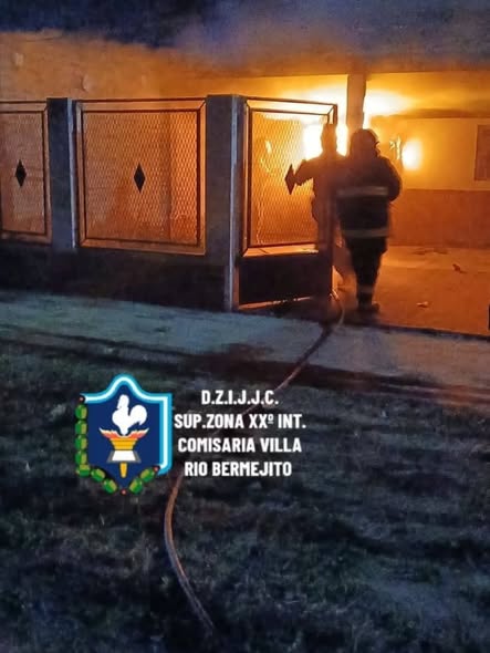 Un incendio de gran magnitud consumió una vivienda en la localidad de Villa Río Bermejito en el barrio Oro Azul, dejando a una mujer sin hogar y causando daños en la propiedad vecina. El siniestro, originado por una falla eléctrica en un aire acondicionado, movilizó a bomberos voluntarios y vecinos para sofocar las llamas.