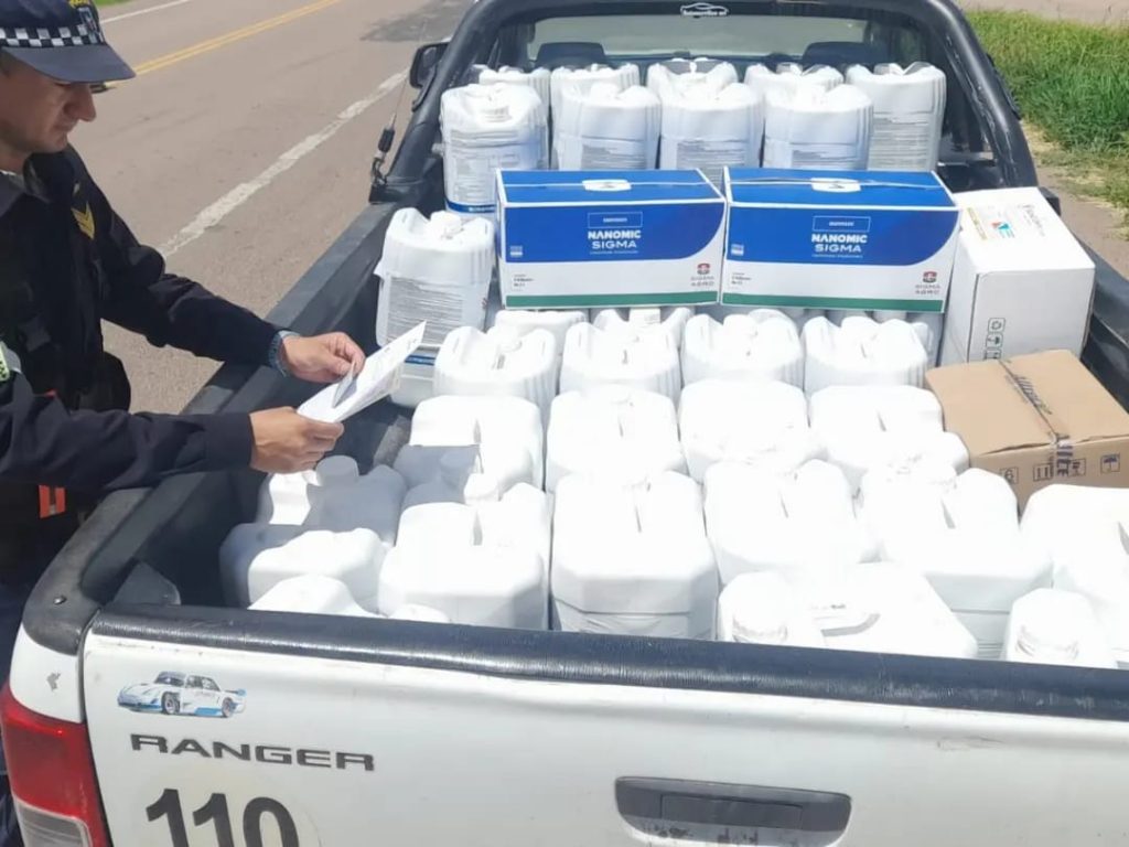 Al realizarse el control físico de la carga y documentación expuesta por el conductor, se constató que transportaba 310 litros de productos agroquímicos.