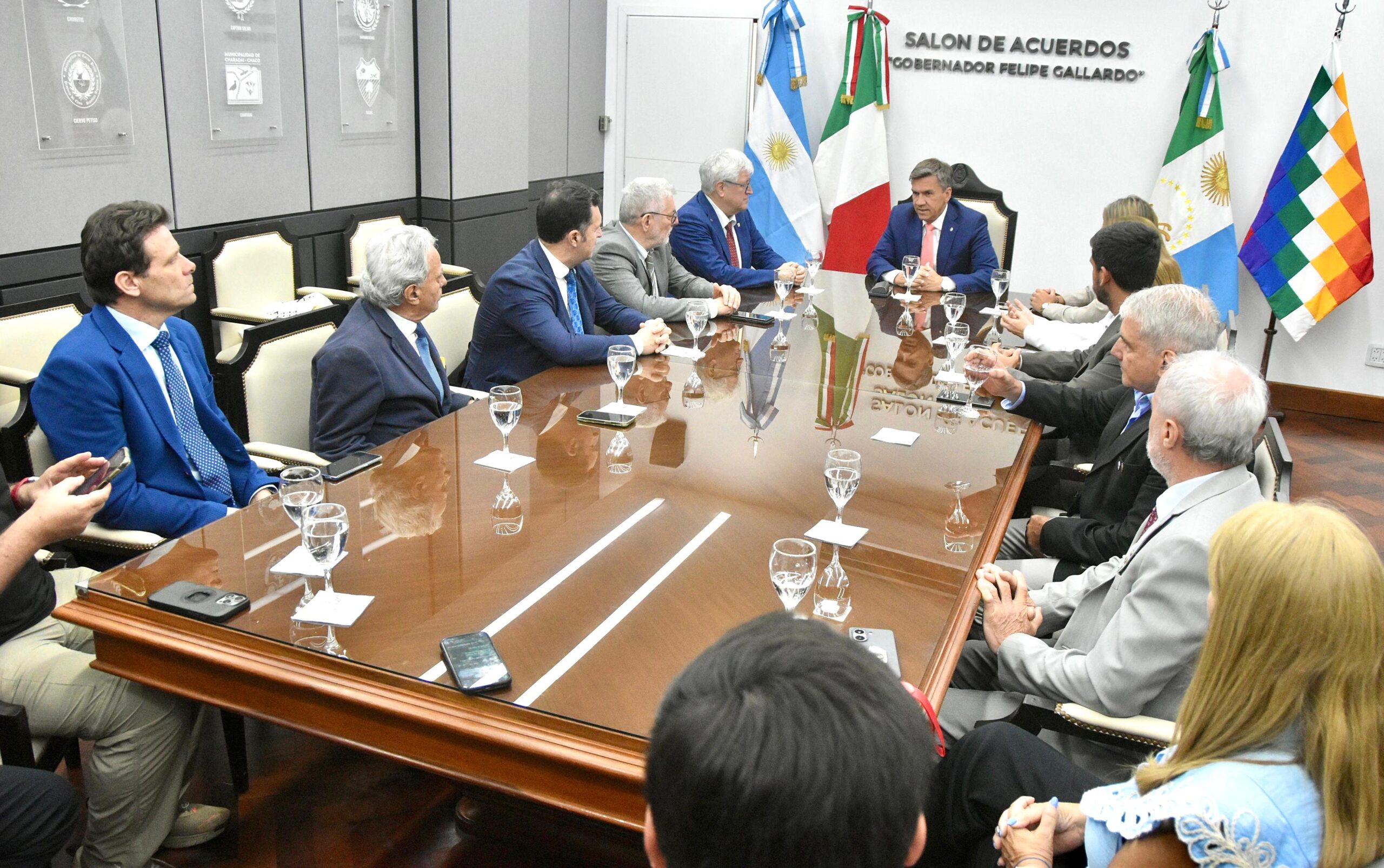 Acompañaron al gobernador la secretaria general de la Gobernación, Carolina Meiriño; el subsecretario de Emprendedurismo Urbano y Rural, Federico Budiño; el presidente de la Agencia Chaco Inversiones, Martín Braillard Poccard; el presidente del Instituto de Cultura, Mario Zorrilla; la presidente del Instituto de Turismo, Verónica Mazzaroli; y el presidente de FECHACO, Alfredo González. Del encuentro participaron además autoridades gubernamentales, representantes de instituciones locales y miembros de la comunidad italiana, consolidando un ámbito institucional que puso en valor el significado histórico, simbólico y diplomático de la conmemoración del aniversario de la ciudad de Resistencia.
