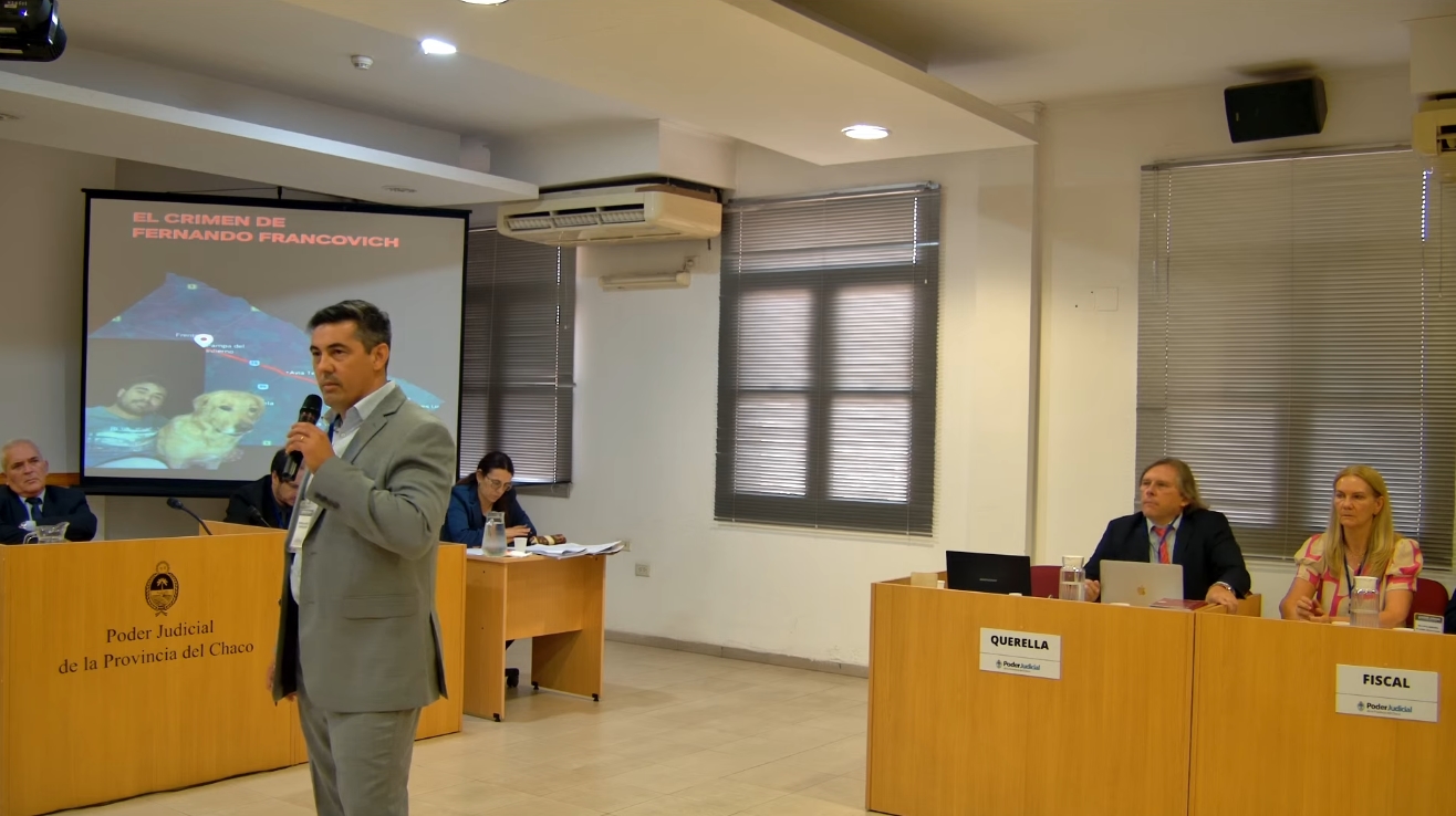 En la segunda jornada del juicio por jurados que tiene lugar en Sáenz Peña en la causa 2.556/2023-2, fiscalía, querella y defensas presentaron sus teorías del caso por la muerte de Fernando Francovich, ocurrida el 21 de marzo de 2023. La causa tiene como imputados a Celestino Cárdenas, Oscar Alfredo Cárdenas, Mario Andrés Jiménez y Carlos Alberto Banegas por el delito de homicidio triplemente agravado por el uso de arma de fuego.
