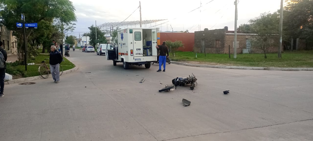 En la tarde de hoy, un nuevo accidente de tránsito ha sacudido la intersección de Calle Belgrano y Gobernador Goitia, involucrando a una motocicleta de 110 cc y a una Renault Kangoo.
