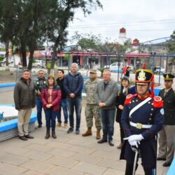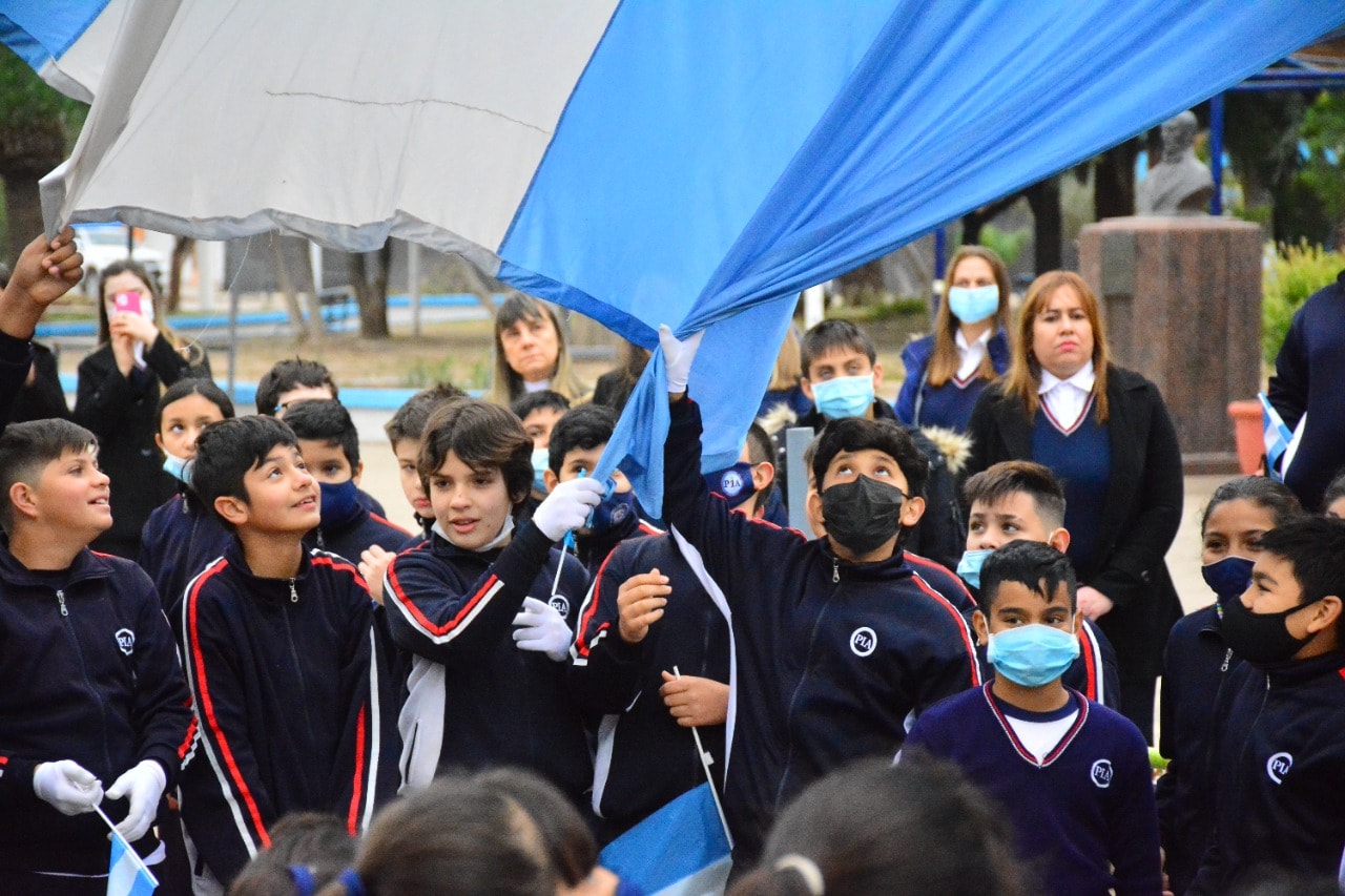 Esta mañana en la plaza San Martin, el Intendente Pio Sander junto a autoridades escolares del Colegio Pía Didomenico, alumnos, docentes y funcionarios izaron las banderas Nacional, Provincial, Municipal y Wiphala.