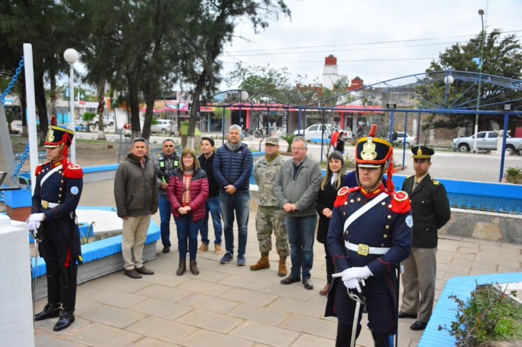 Esta mañana en la plaza San Martin, el Intendente Pio Sander junto a autoridades escolares del Colegio Pía Didomenico, alumnos, docentes y funcionarios izaron las banderas Nacional, Provincial, Municipal y Wiphala.