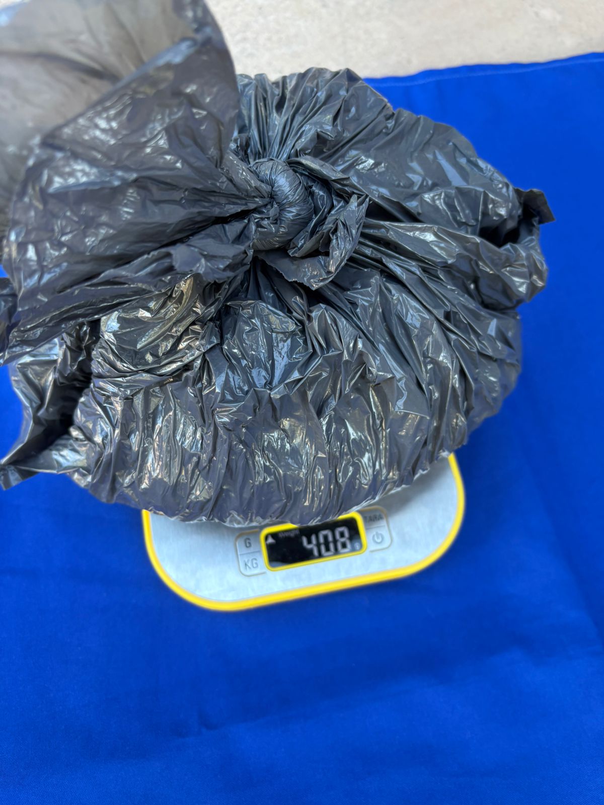 Posteriormente realizaron la prueba de campo, arrojando resultado positivo para marihuana, con un peso total de 408 gramos.