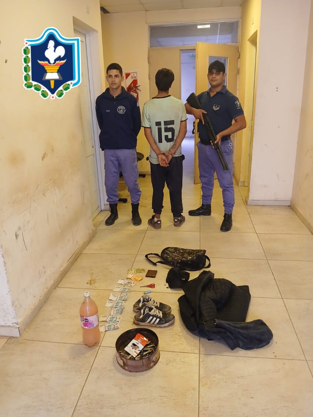 Tras revisar el domicilio, la mujer constató la sustracción de una billetera, 50.000 pesos en efectivo, un juego de toallones sin uso, prendas de vestir y mercaderías. En el lugar, la Policía secuestró diversos elementos abandonados por el sospechoso, entre ellos una lata con llaves, un par de zapatillas y una campera.