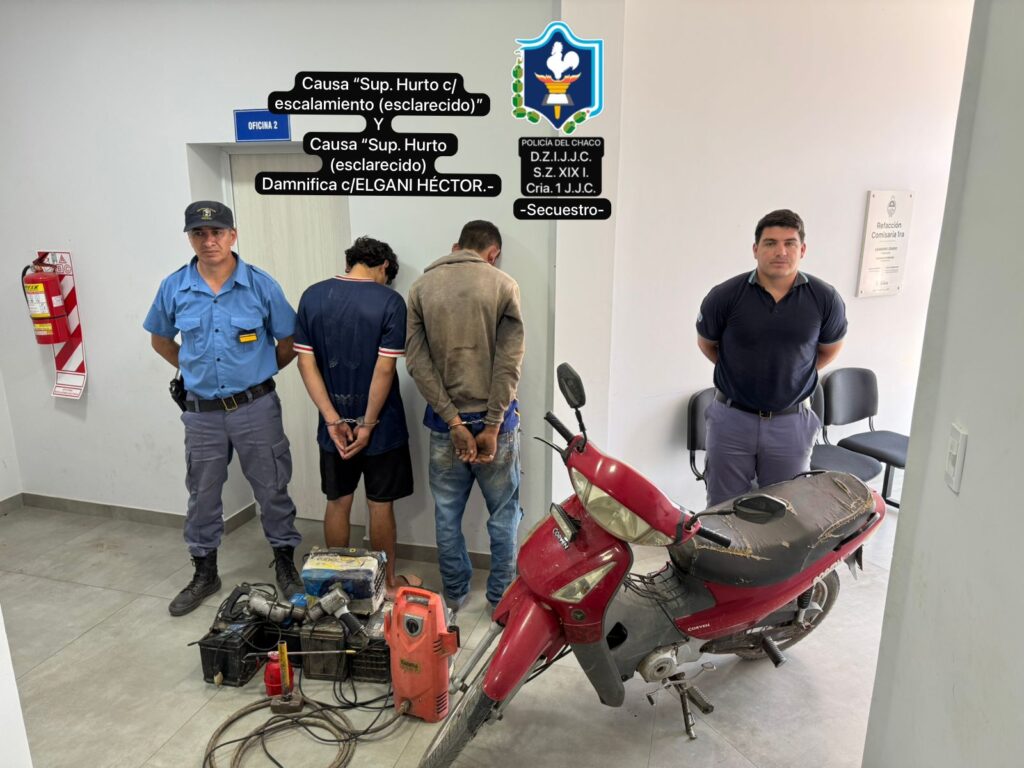 El fin de semana un hombre de 46 años informó a los efectivos de la Comisaría Primera de Castelli que observó por las cámaras de seguridad de su taller ubicado en la avenida Güemes al 1900 aproximadamente y vió a dos sujetos que se estaban llevando baterías de autos y herramientas. Inmediatamente los agentes se dirigieron al lugar.