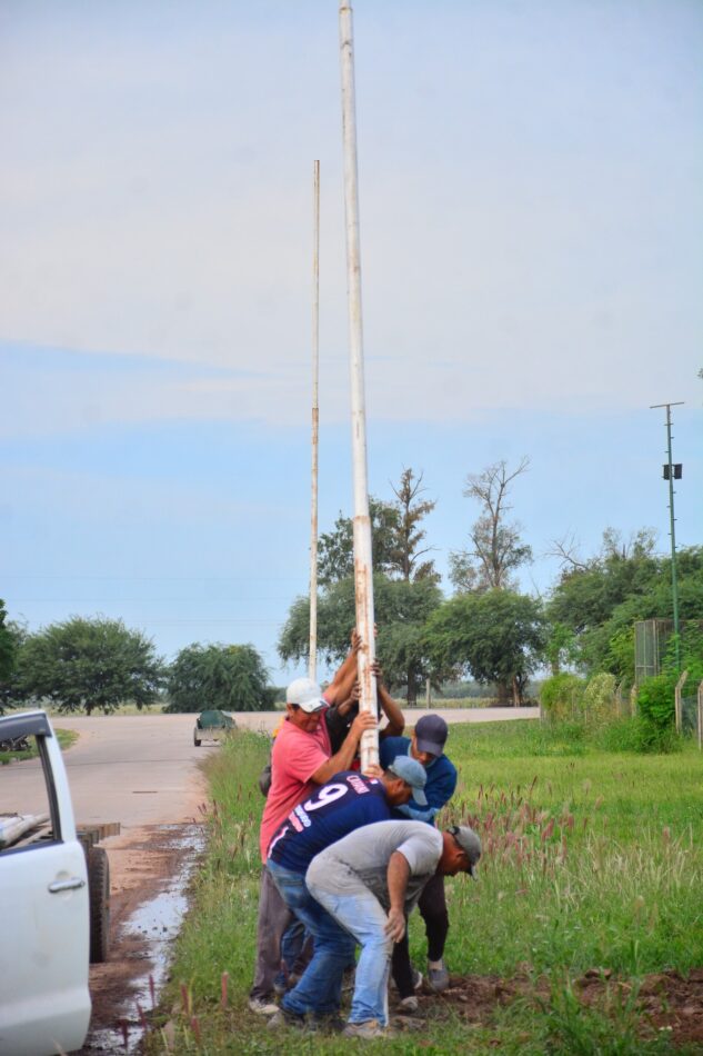 Asimismo, en Avenida Alem, sector este (salida a Ruta 95), se avanzó con la instalación de nuevas columnas de iluminación, atendiendo el pedido de vecinos y transeúntes que circulan por la zona.